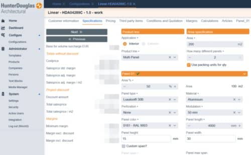 In het verleden heeft Hunter Douglas Architectural geprobeerd dit te ondervangen in verschillende Excel-calculaties, maar dat creëerde een wirwar en wildgroei aan bestanden. Met als gevolg dat niet iedereen altijd in een laatste versie werkte – met alle gevolgen van dien.